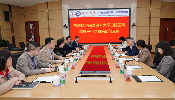 3月10日下午,南方医科大学口腔医院党委书记黄治才、副院长邵龙泉等领导一行到我院交流访问,我院党委书记谭静,党委副书记、纪委书记沈颉飞,党委副书记林云锋及相关职能部门负责人出席座谈交流会。