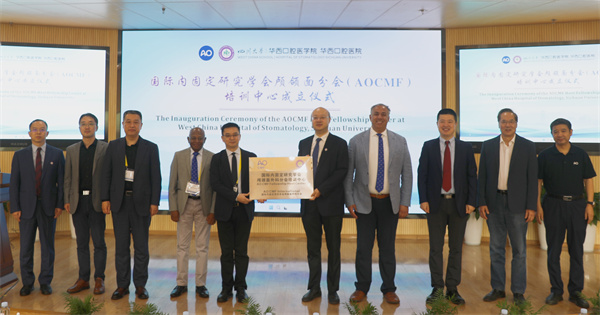 韩向龙院长致辞表示,AOCMF培训中心在我院成立,是一份认可更是一份责任,华西口腔将继续以人才培养为己任,致力于打造国际颅颌面外科人才培养高地和学术交流中心。仪式上, AOCMF中国理事会主席彭歆教授为我院AOCMF培训中心授牌。