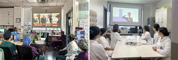 外科手术室党支部组织收看纪念中国人民抗日战争暨世界反法西斯战争胜利80周年大会