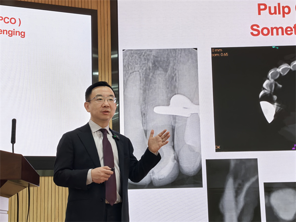 杨懋彬教授带来了关于“牙外伤和牙根吸收”的精彩报告,他结合经典文献、大量临床案例和长期随访数据,深入浅出地讲解了各类牙外伤的处理原则、序列治疗及预后评估,系统回顾了再生性牙髓治疗的生物学基础,重点介绍了牙髓血运重建的病例选择、临床流程和疗效评估。现场听众就临床中遇到的具体疑难病例与杨教授进行了热烈互动和深入交流。