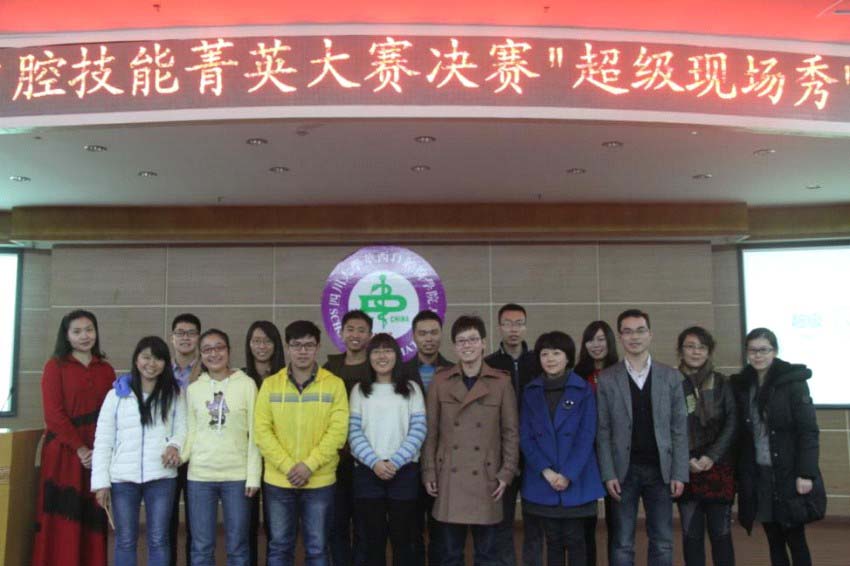 我院超级牙医系列比赛历史悠久,深受追捧,在同学老师中享有盛誉。2014年11月30日下午14:00,由我院分团委学生会科技部主办的超级牙医比赛之“超级现场秀”于口腔教学楼多功能厅拉开序幕,院党委副书记谭静老师,院分团委书记、研究生辅导员张金军老师,学生党支部书记、2010级辅导员徐茄老师,2011级辅导员李莎老师、2012级辅导员李夏怡老师、2013级辅导员晋佑顺老师、2014级辅导员杨媛老师担任本次比赛评委。