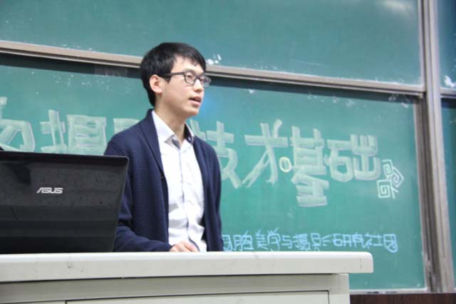 社团成员陆跃智讲述了口腔摄影方面的器材使用和技术指导。首先讲述的是曝光问题,顺势引入了光圈、快门速度、感光度等概念以及曝光各系数之间的关系。接着还提出思考题让现场同学抢答,答对的同学可以获得一份精美小礼品,同学们都积极抢答,会场气氛进入高潮。