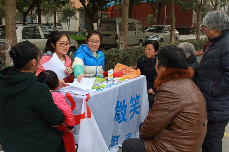 2013年12月13日,我院青年志愿者队在文星镇光明社区开展“微笑之风,口腔知识进社区”志愿活动。来自我院2012级和2013级的同学参加了此次活动,进行了口腔知识的宣传。
