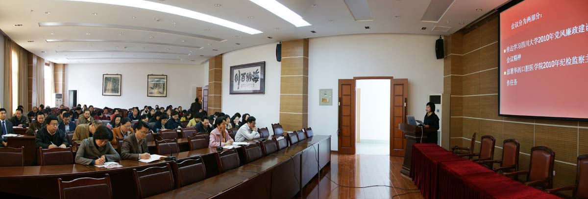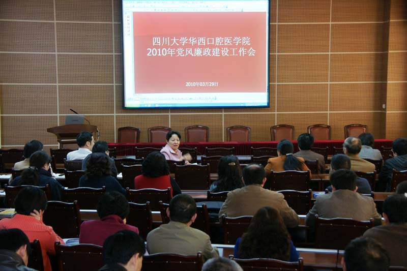 3月29日下午,我院2010年党风廉政建设工作会在科教楼华西厅召开。全体院领导、科主任、支部书记、重点部门及重点岗位负责人参加了会议。会议由院长周学东教授主持。