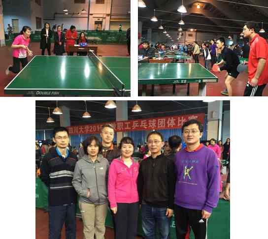 为认真贯彻落实《全民健身计划纲要》,提高我校教职工体质健康和竞技体育技能,加强校园文化建设,我院积极组队响应由四川大学主办,四川大学校工会承办的川大职工乒乓球比赛。我院由王晴、柳茜、叶斌、颜斌、杨劲松、谢磊六名老师组成强大阵容参赛,队员们一路过关斩将,最终获得全校排名第四名的好成绩!